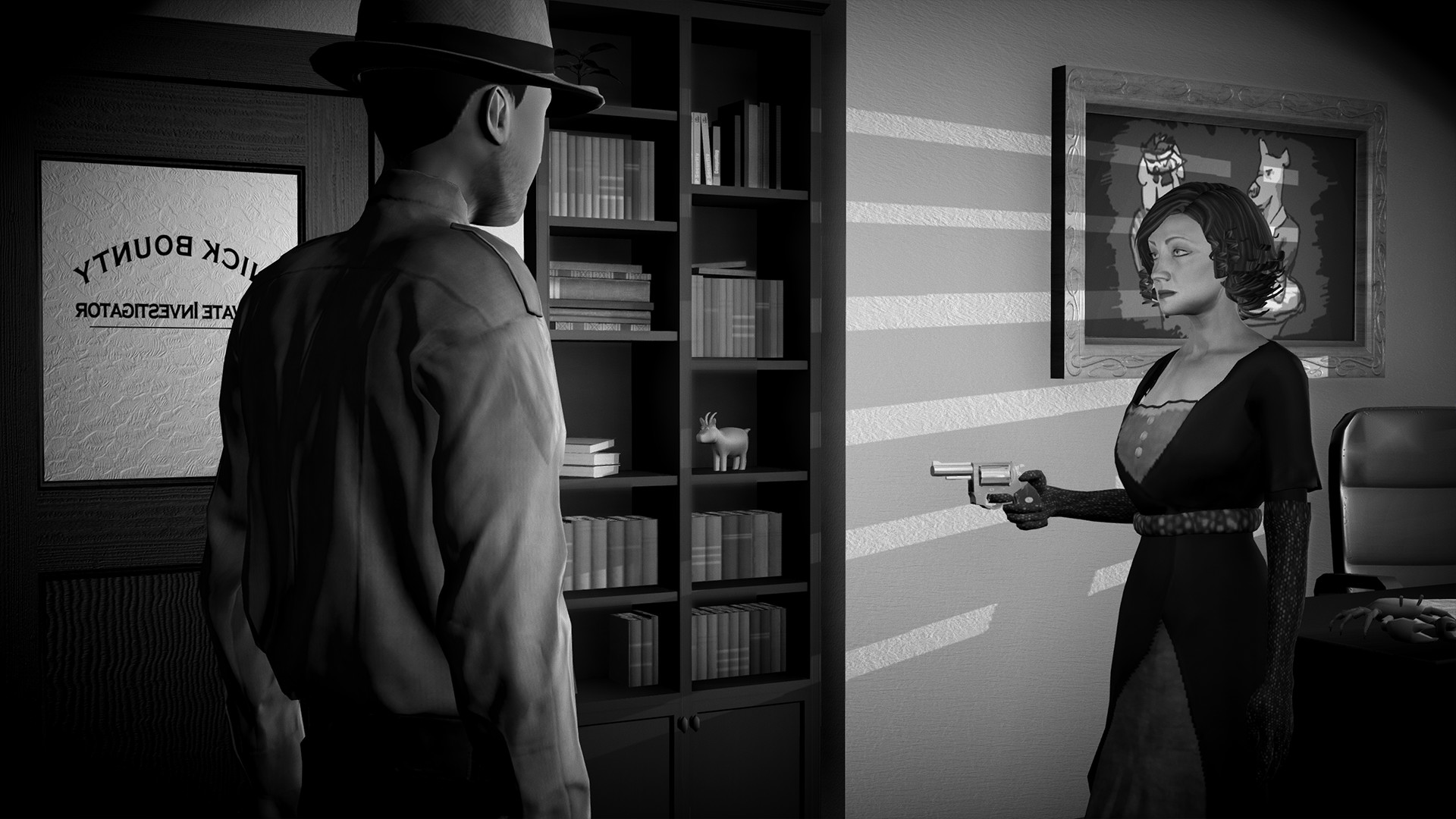 Nick Bounty and the Dame with the Blue Chewed Shoe is a comedic spoof on classic film noir detective movies inspired the classic adventure games of Lucas Arts and Telltale games. It's a little bit Maltese Falcon, a little bit CSI, and a little bit Naked Gun.