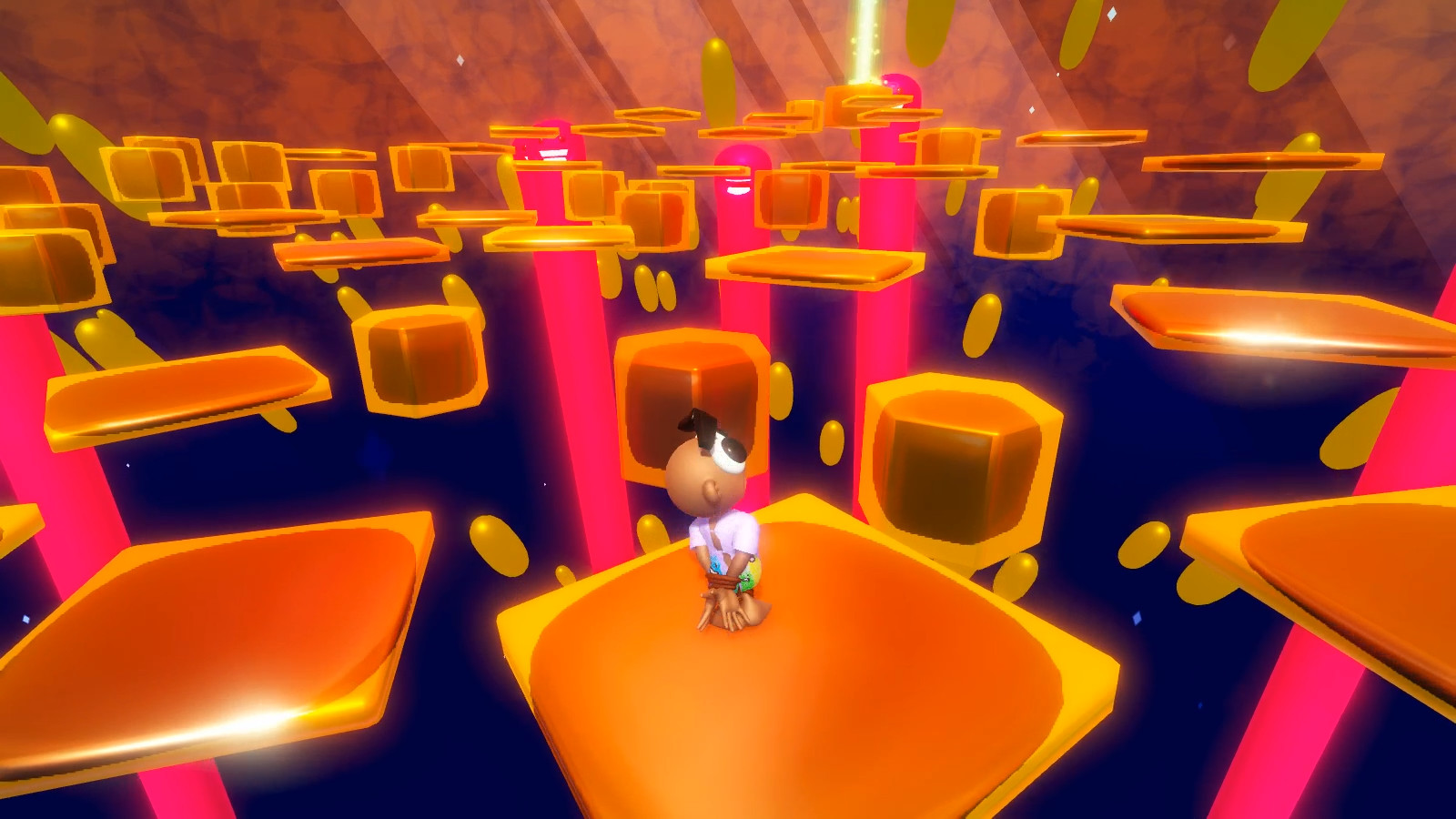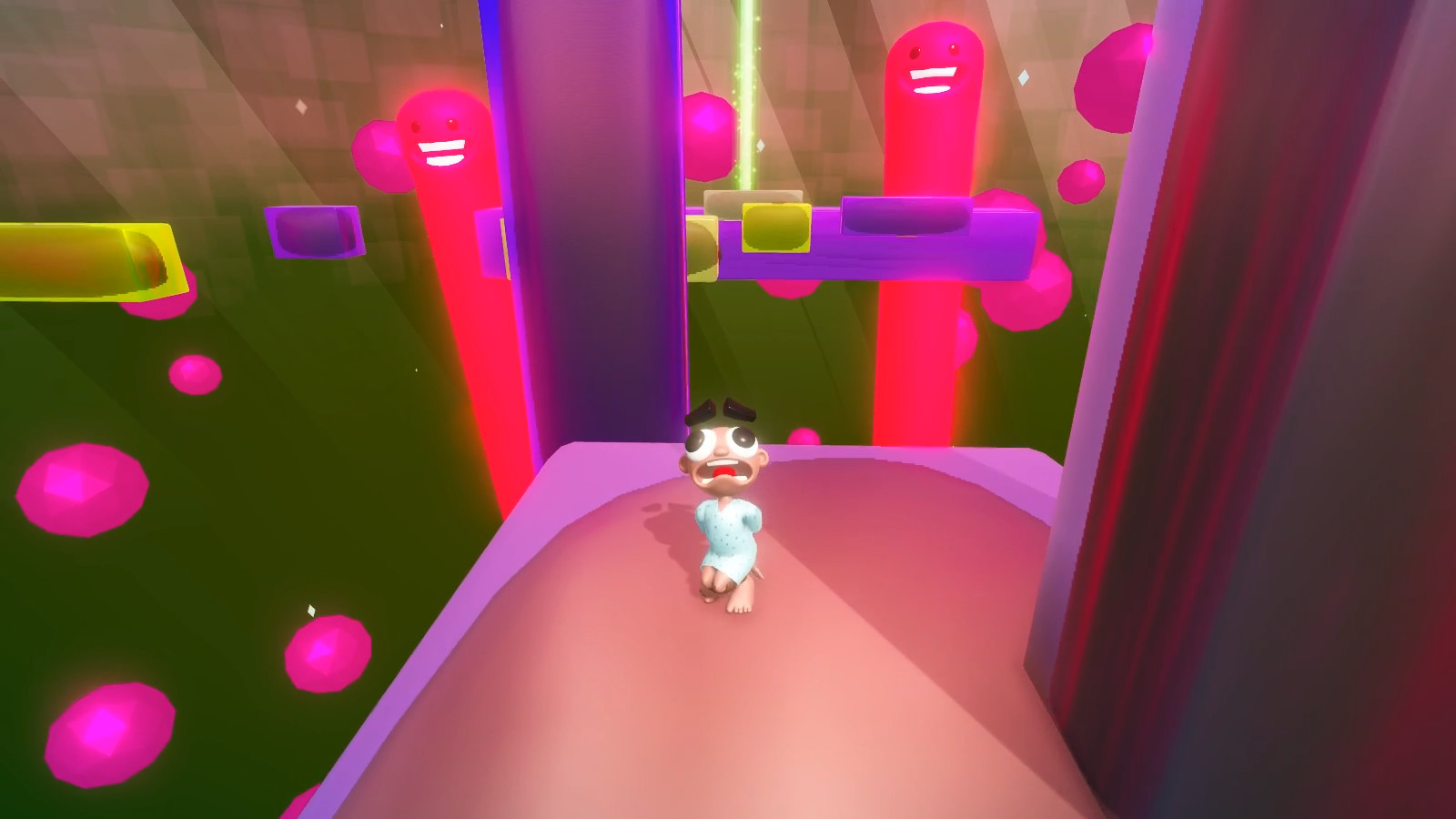 - Strange floating platforms that seem to be filled with jelly
