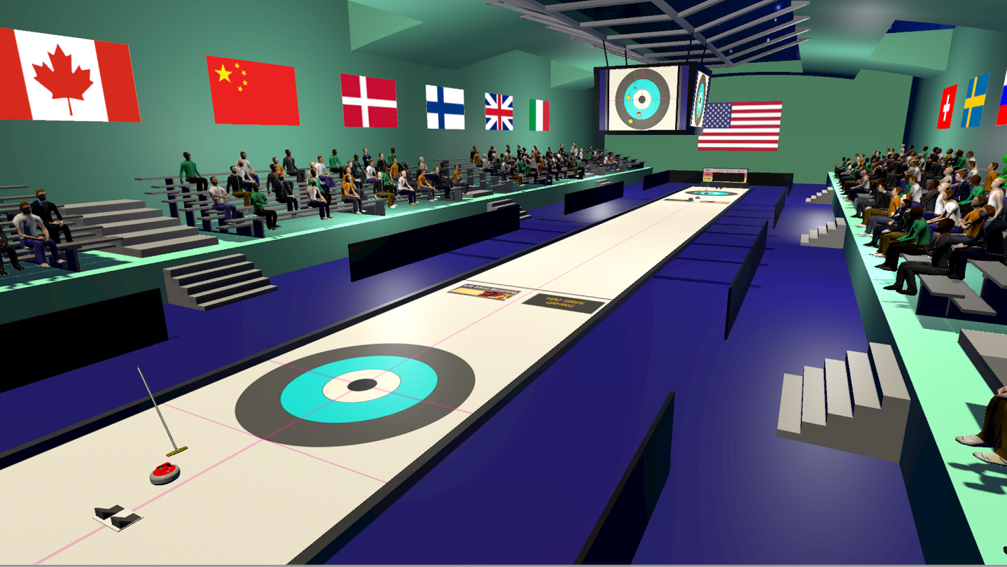 Yes, you actually get to sweep in this game as well! Influence the speed of the stone (and thus the amount of curl as well) by sweeping in front of the stone while it is moving. For those who are new to curling, sweeping in front of the stone makes it go faster and want to curl less. You can even turn on sweeping particles to help visualize the effects of sweeping. Red particles indicate a significant effect from sweeping, green particles indicate a moderate effect, and blue particles indicate a minor effect.