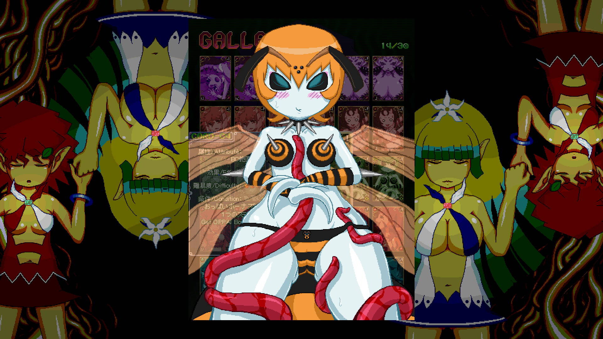 Collect cards to unlock sexy hentai CG scenes involving Kei, tentacles, and monster girl bosses at the in-game art gallery!