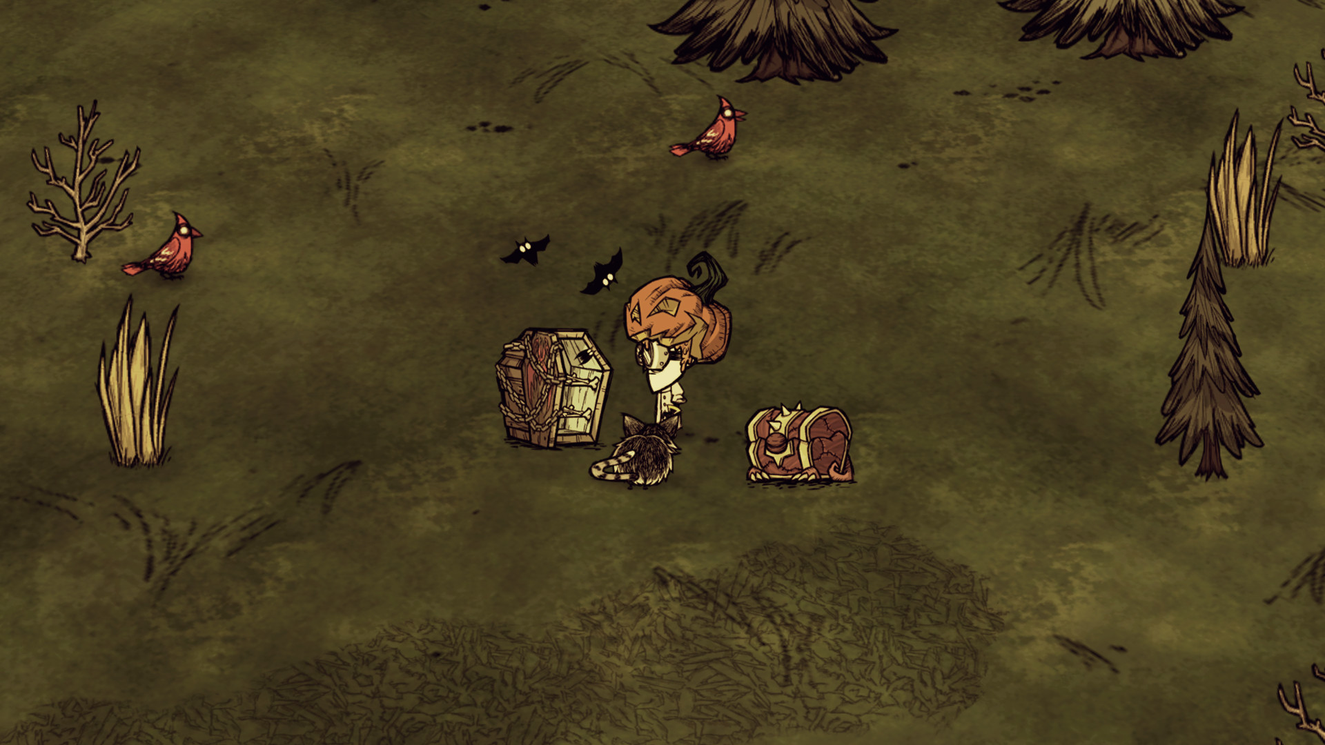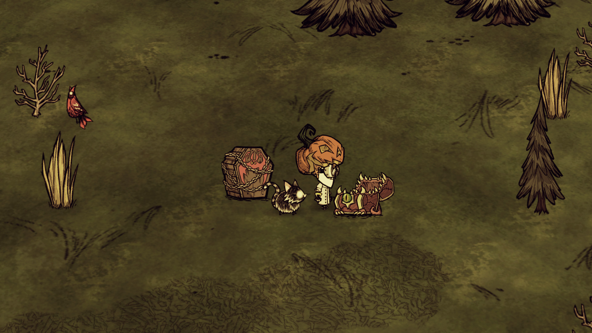 Double, double toil and trouble. Fill your witch’s cauldron with the Hallowed Nights Belongings Chest featuring eerie Halloween themed versions of Don’t Starve Together items. “Eye of newt” and “toe of frog” not included.