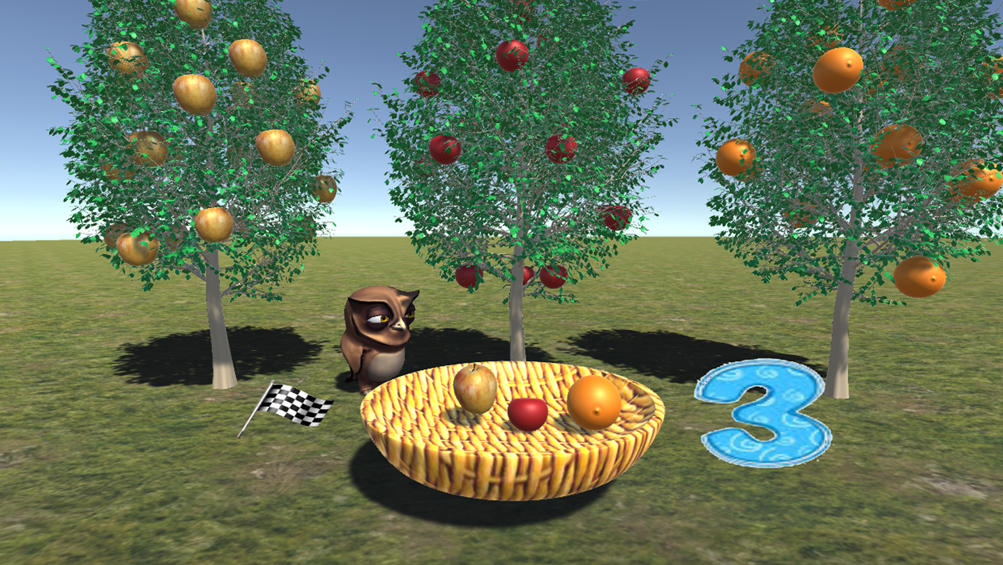 fruits in the basket and click the number accordingly. In Match Quantity to Number the child must drag the number of fruits to the basket and then click on a button flag when finished. In "Number Recognition" the child must memorize the number of fruits