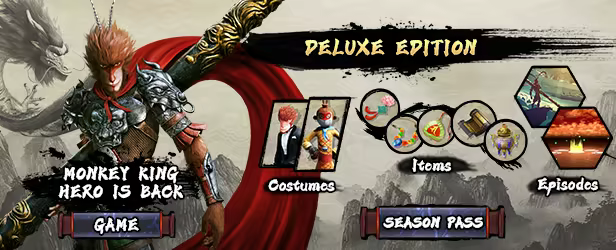 • 斉天大聖孫悟空でプレイしよう。輝かしいスキル、アイテム、クールな連続技、面白効果、反撃のQTEなど、トップクラスの中国カンフーが盛りだくさん。思う存分プレイしよう!