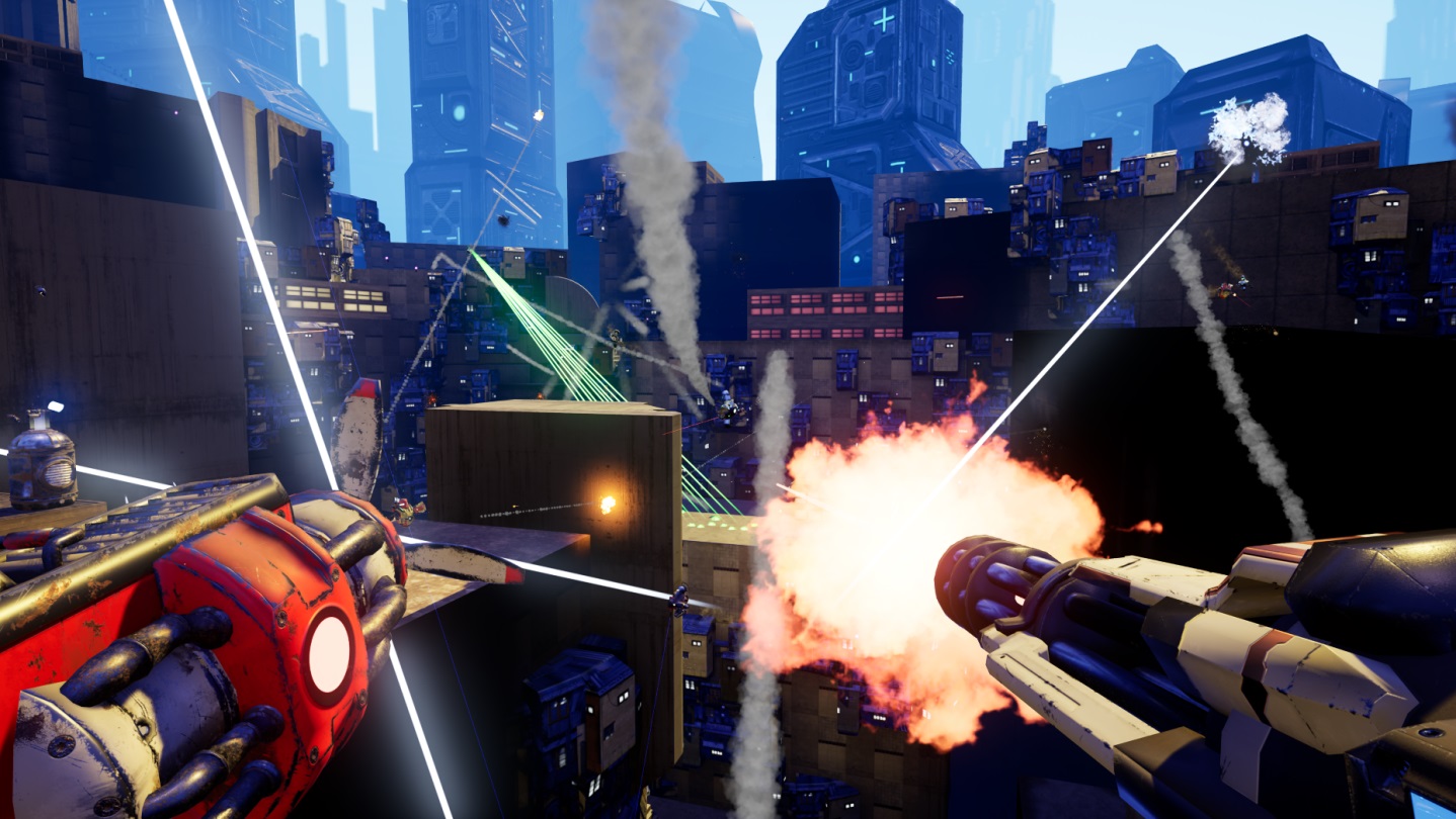 Take to the skies and drop 'em like flies in this multiplayer arena shooter built from the ground up for Virtual Reality. Fly with unbridled freedom with the most streamlined movement controls in VR. Unleash the fury of dozens of futuristic and heart-stopping weapons and pick-ups to blaze your way to victory.