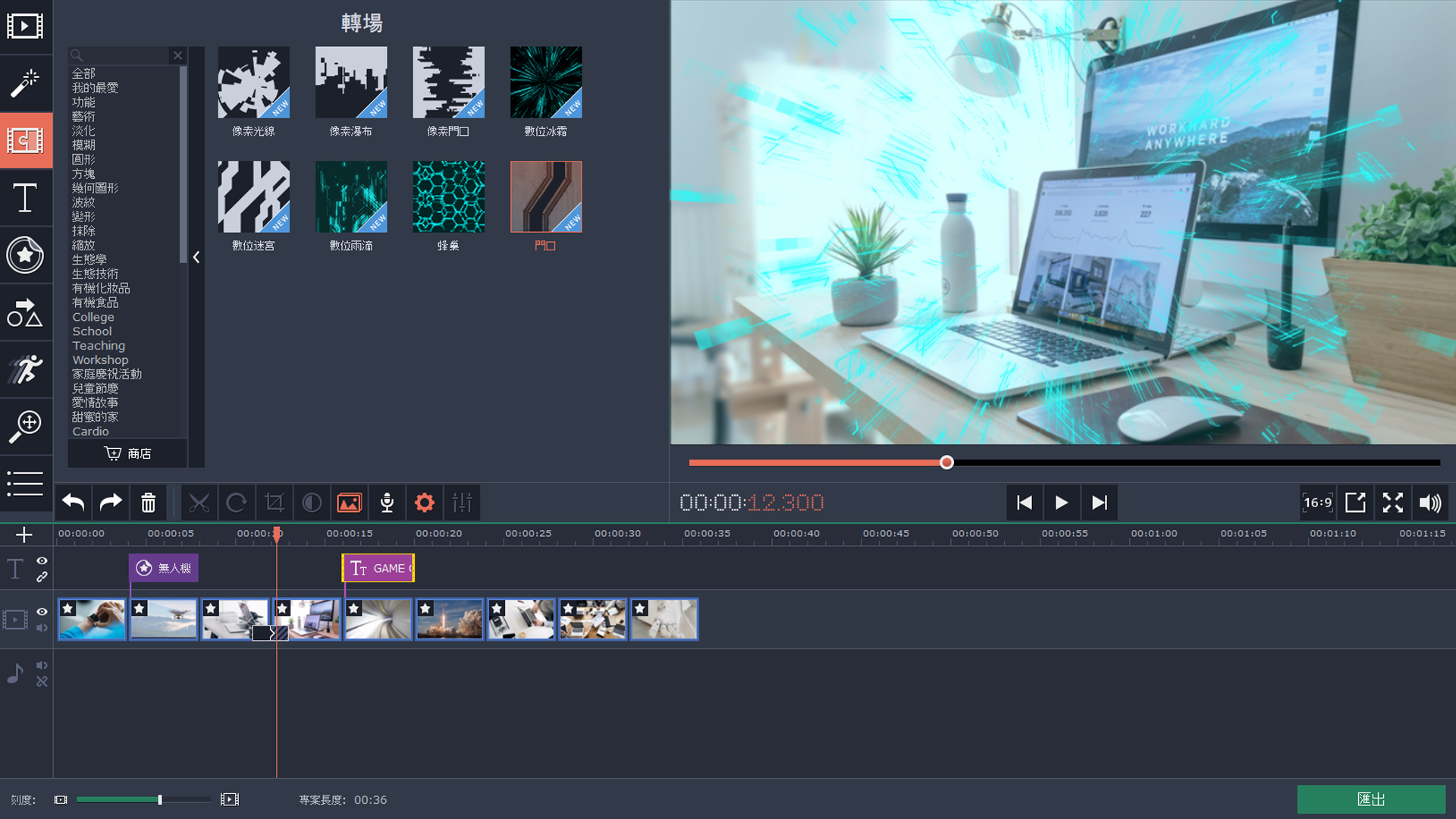 • 30 種轉場特效