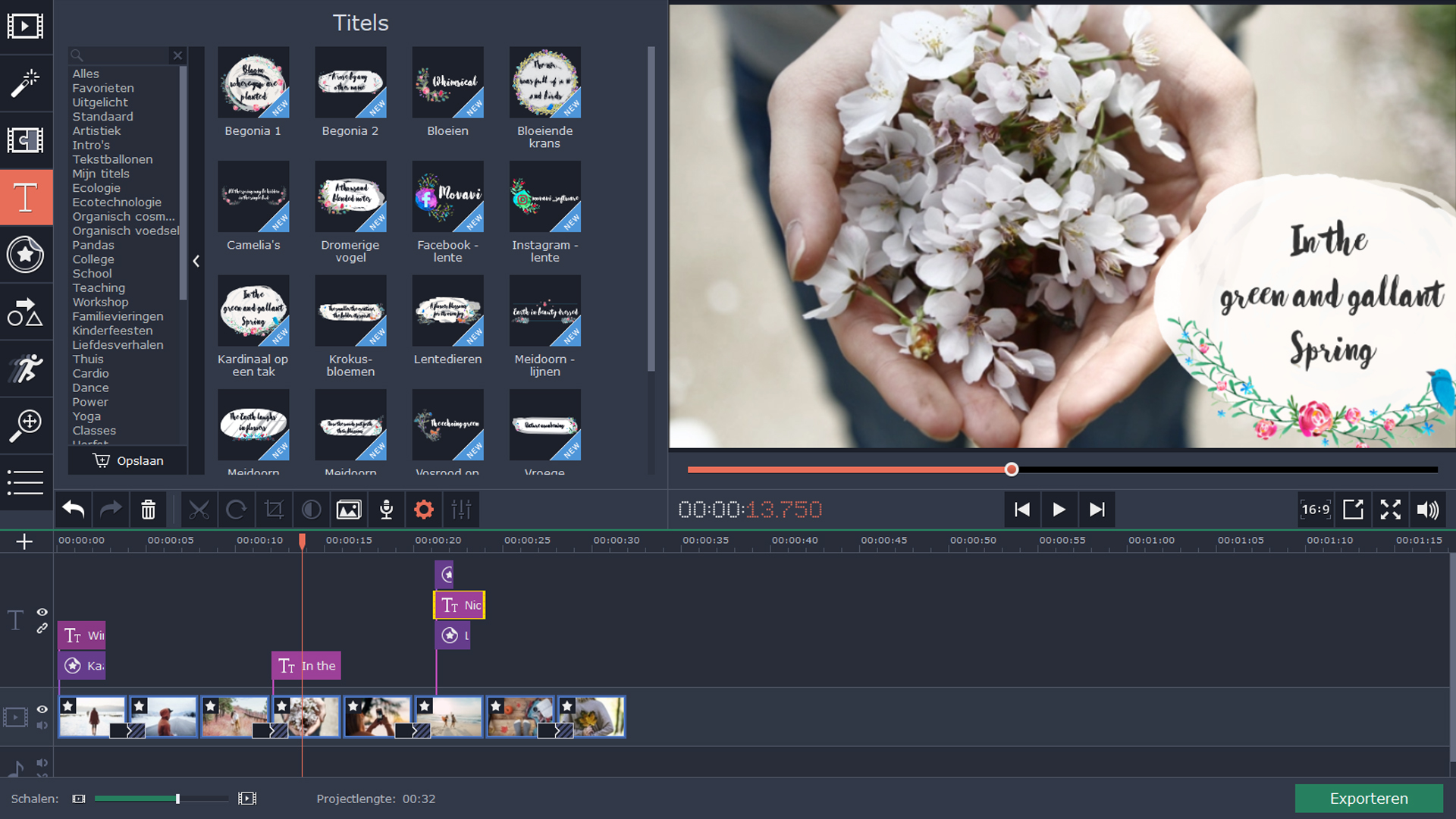 Hete zomerdagen en koude winternachten, regenachtige herfstavonden en de eerste bloemen van de lente... Creëer perfecte seizoensdecoraties met behulp van titels, stickers en achtergronden. Voeg wat sfeervolle muziek toe en klaar is Kees.