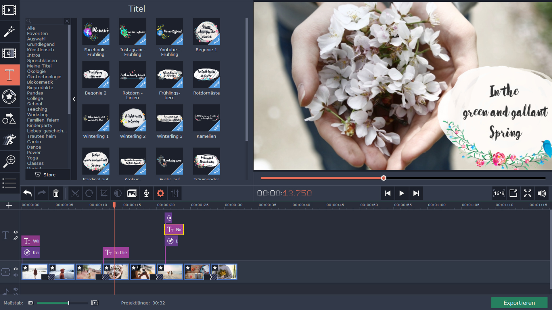 Heiße Sommertage oder kalte Winternächte, verregnete Herbstabende oder die ersten Frühlingsblumen: Sorgen Sie mithilfe von Titeln, Stickern und Hintergründen in jeder Jahreszeit für die perfekte Dekoration. Fügen Sie noch die passende Musik zur Atmosphäre hinzu und los geht's.