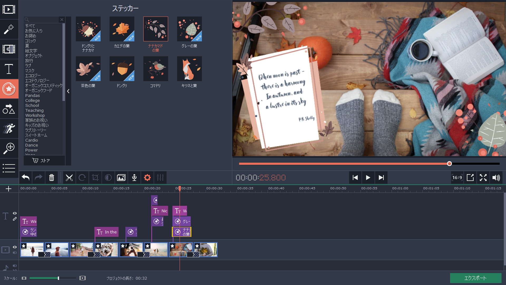四季の彩りと雰囲気をビデオやスライドショーに追加してください。