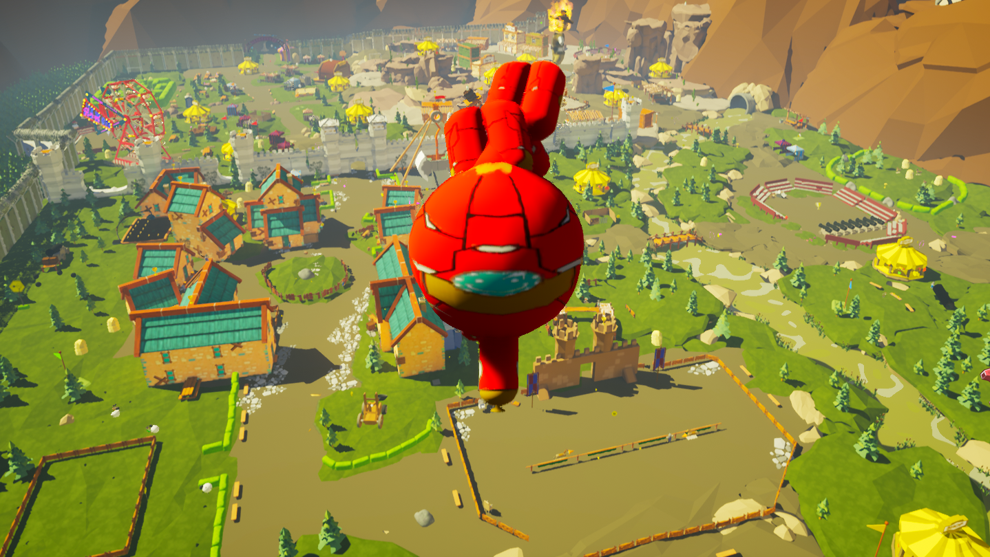 Up in the Air is a zany, open-world game made by students at SMU Guildhall. You play as a balloon dog exploring a demented carnival populated by crazy children using a variety of power-ups, like water balloons and ground pound, to fend the kids off and collect carnival tickets.