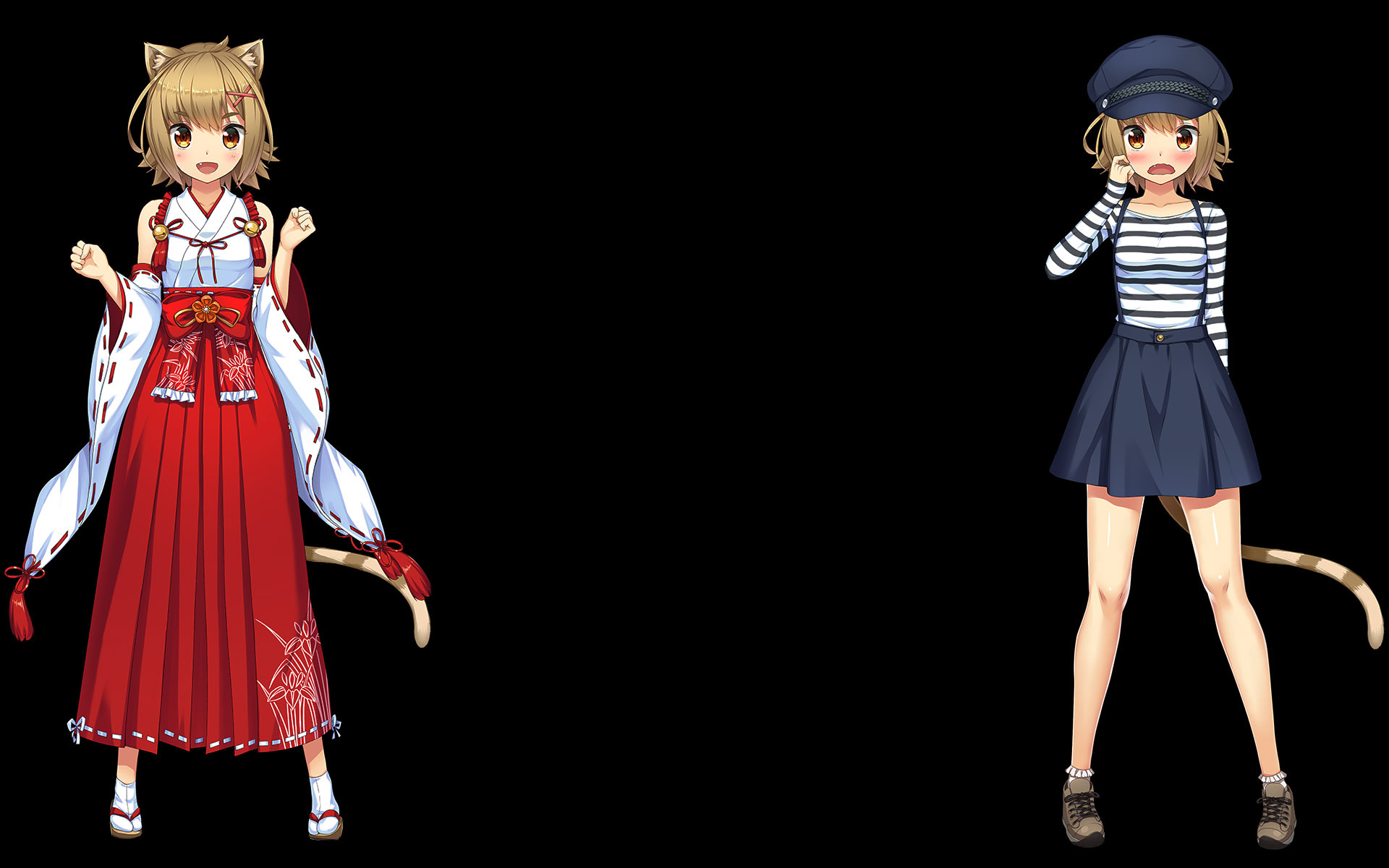 The main character is an unfortunate man who can't do anything well. One fateful day, he meets 2 cat-eared shrine maidens by the name of Ayame and Kaede at an old shrine, and ends up living with them! Set in Akihabara, enjoy this adventure game of the slightly dirty-minded and eventful cohabitation life with 2 cat-eared shrine maidens.