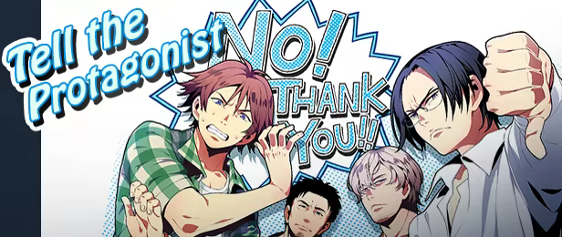 NO, THANK YOU!!! is a dark, dramatic mystery hidden behind a comic veneer as all of the men in this yaoi visual novel harbor their own secrets. Uncover the mystery behind the protagonist and this bar disguising a detective agency while flirting with the guys and growing intimate with them.