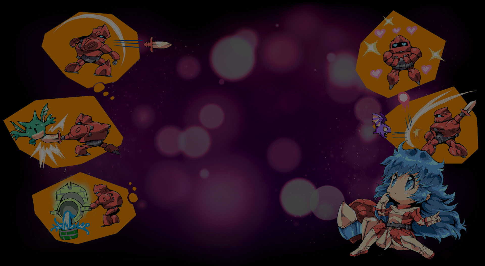 Panzer Paladin is an action-platformer game featuring intuitive swordplay mechanics. The protagonist pilots the Paladin power armor to fight giant demons by using their own weapons against them.
