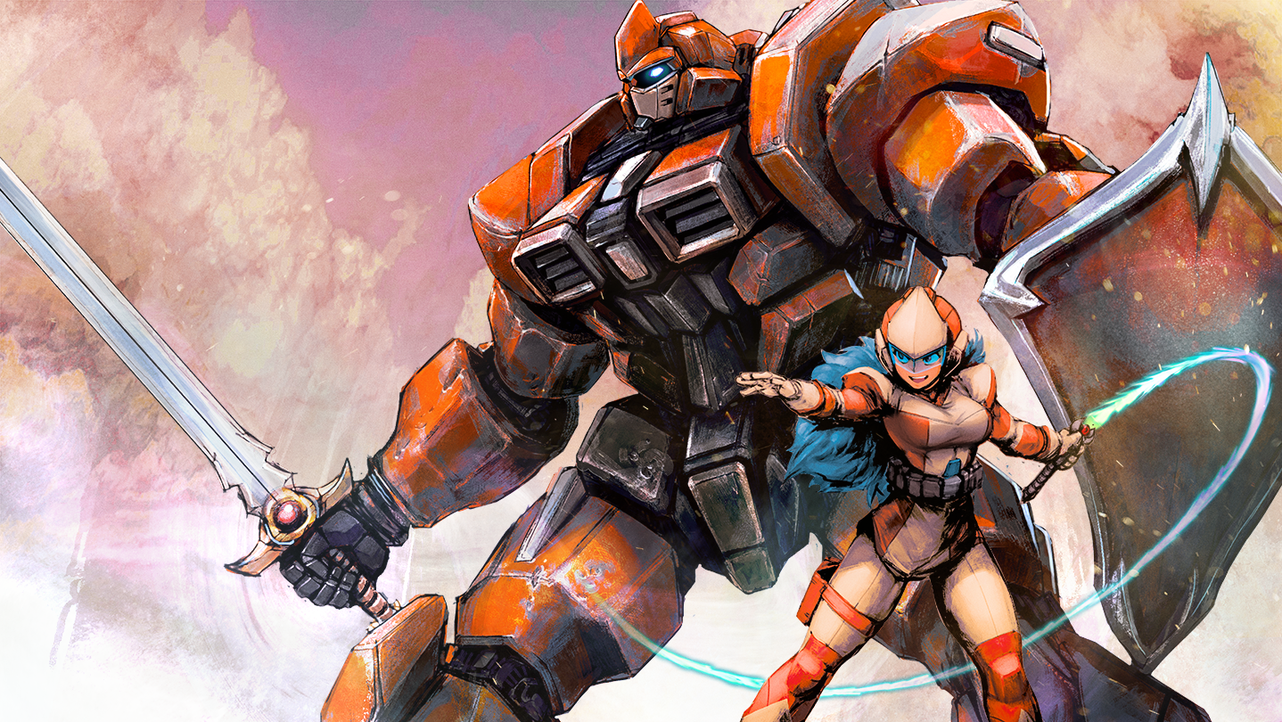 • Take control of Grit, the mighty Paladin power armor, or eject and play as Flame, the small-but-swift Squire pilot!