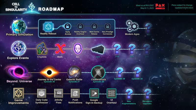 - Upgrade the evolution of a single cell organism into a civilization on the brink of a technological singularity