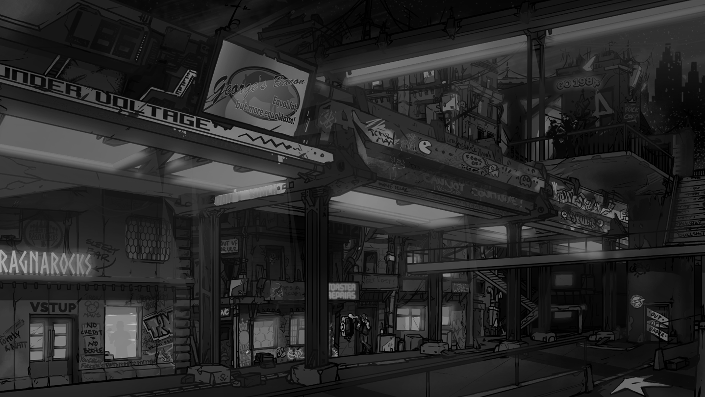 • Let's be serious, it's funny: Born Punk is science-fiction with heavy cyberpunk influences; but we're also boasting a hopeful, often humorous undertone. Point & click adventures without at least a bit of humour are unthinkable to us!