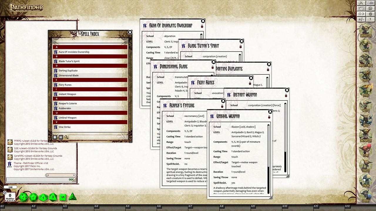 Requires: The free Fantasy Grounds virtual tabletop (VTT) software and the included Pathfinder RPG and D&D 3.5/ OGL ruleset.