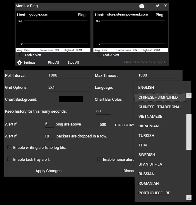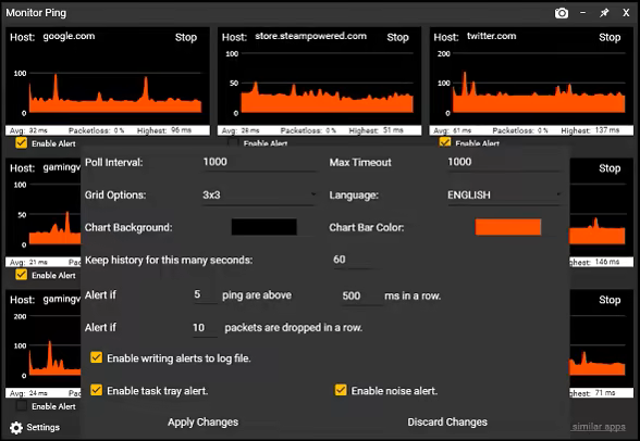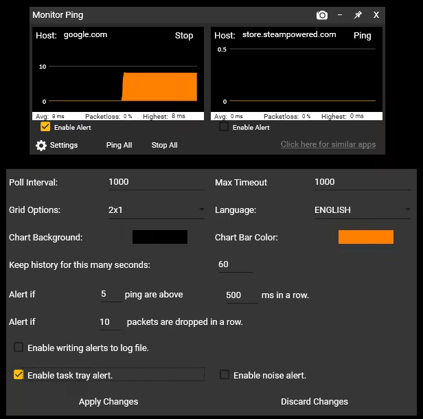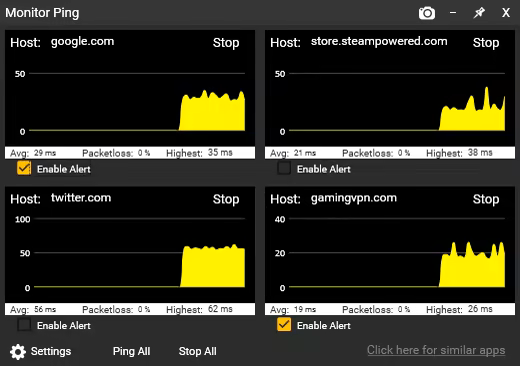 Now let's say you're getting drops from your favorite game server, or experiencing lag. Just by looking at the Monitor Ping app, you can now confirm some very important information.