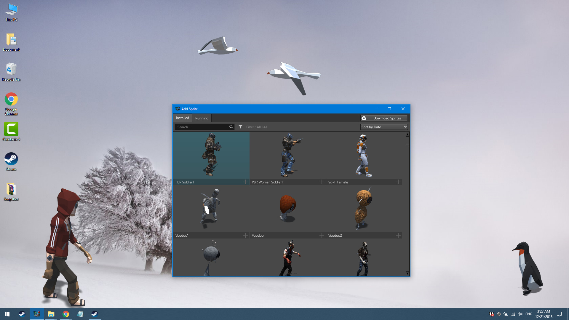 (2) Double-click the tray icon to display the local sprites list and double-click the sprite preview you want to add or click the "+" button in the lower right corner of the preview to add it to the desktop.