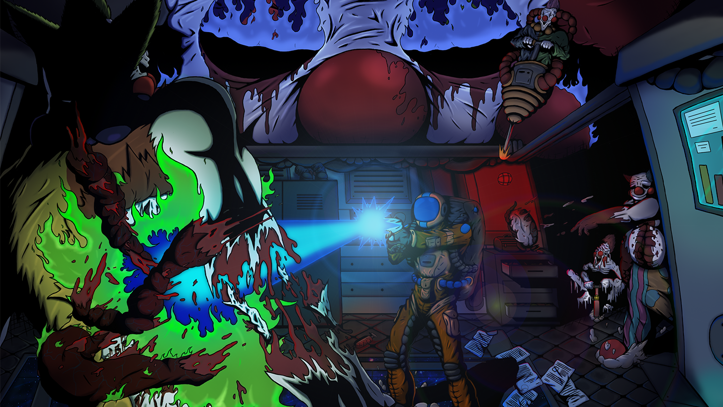Circus Interstellar is a brutal arcade shooter featuring high-octane action, and killer music! Earth voyagers encounter a sadistic alien race with a terrifying clownish appearance and a nasty appetite. Will the survivors escape the gory circus? Or will they be assimilated like all the rest?