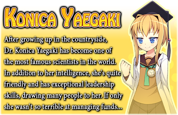 The pretty and talented scientist, Konica Yaegaki, must earn money to save her lab from competing companies and peers who seek to destroy her reputation. However, she won't go down that easily. Follow Konica in this slice-of-life RPG as she tries to save her laboratory!