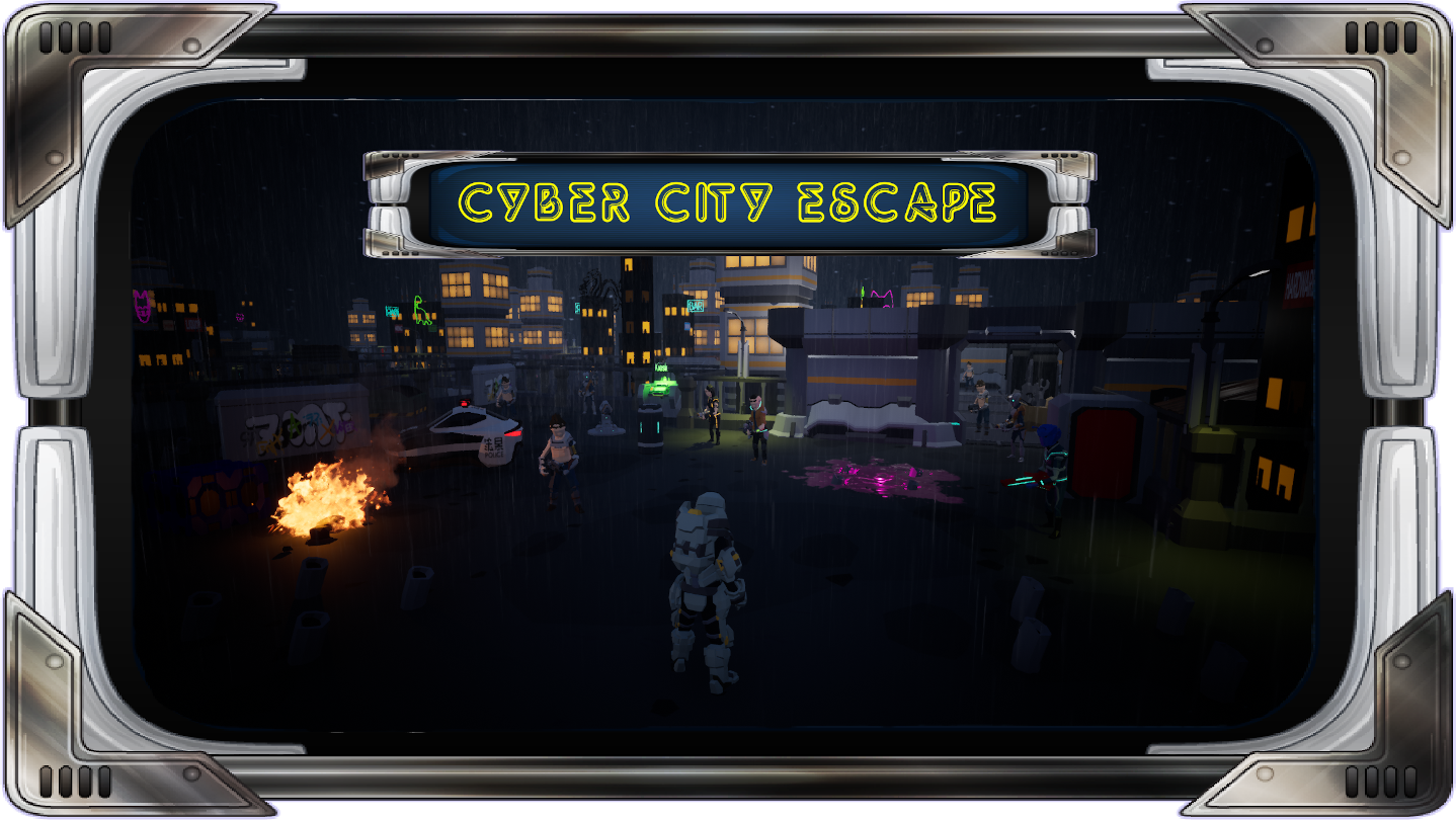 Cyber City Escape is a 3D topdown roguelite shooter set in a cyberpunk world.