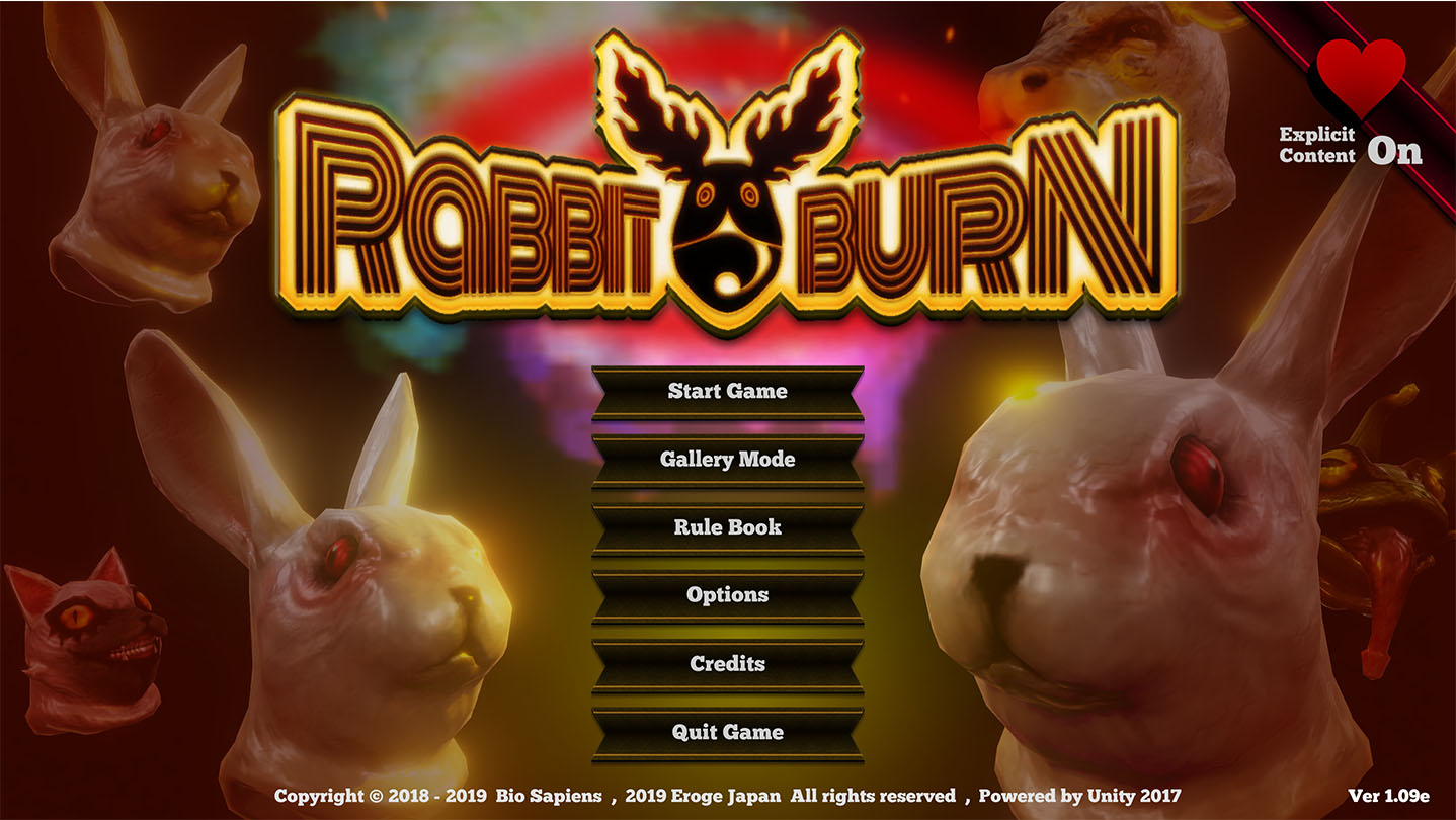 Fabulous riches, flying fists, and sensual embraces abound in this dazzling arena where rabbit men and bunny girls sprint to and fro, dodging explosions, brawling, making love, or just rocking out. It's the crazy, depraved billiards game, Rabbit Burn!