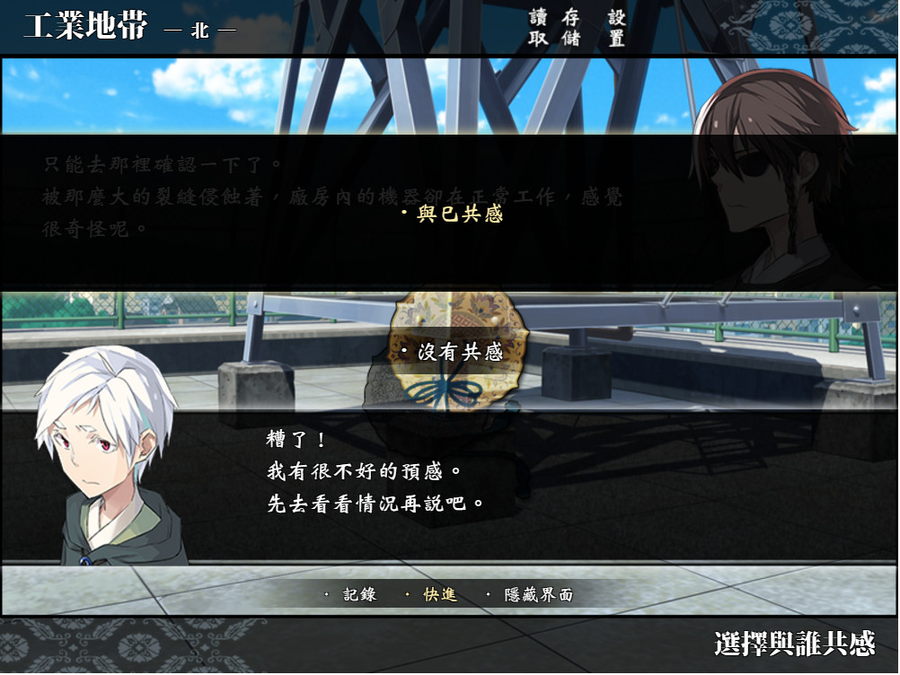 遊戲中會有將故事情節引到不同方向,並影響地支的好感度的選項。選擇要與哪一位角色進行共感,做出二選一的選擇。