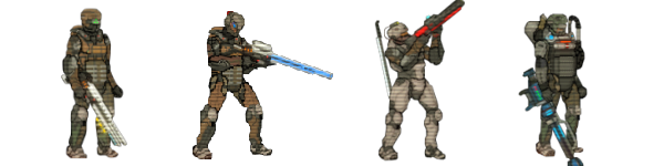 In addition to carbines and shotguns, assault gunners can also use melee weapons such as laser swords to deals multiple damage to enemies in one turn.