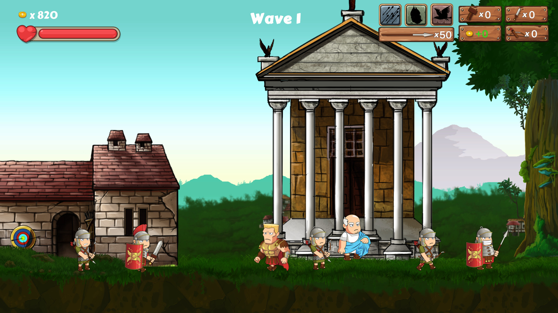 Now it’s up to General Marcus Aurelius to defend the last Roman village and preserve what remains of a once-great civilization. Enemy forces attack from both sides — you must balance your defenses, spend your gold wisely, and lead your people through chaos.