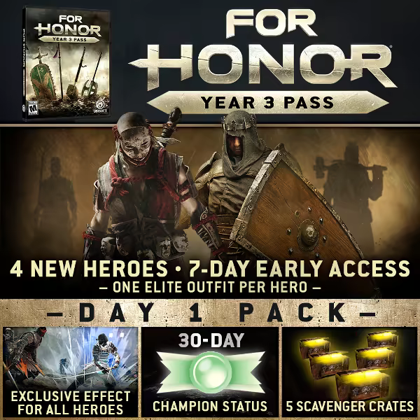 Get VIP early access to 4 new Heroes, plus exclusive bonus content. The For Honor Year 3 Pass includes: