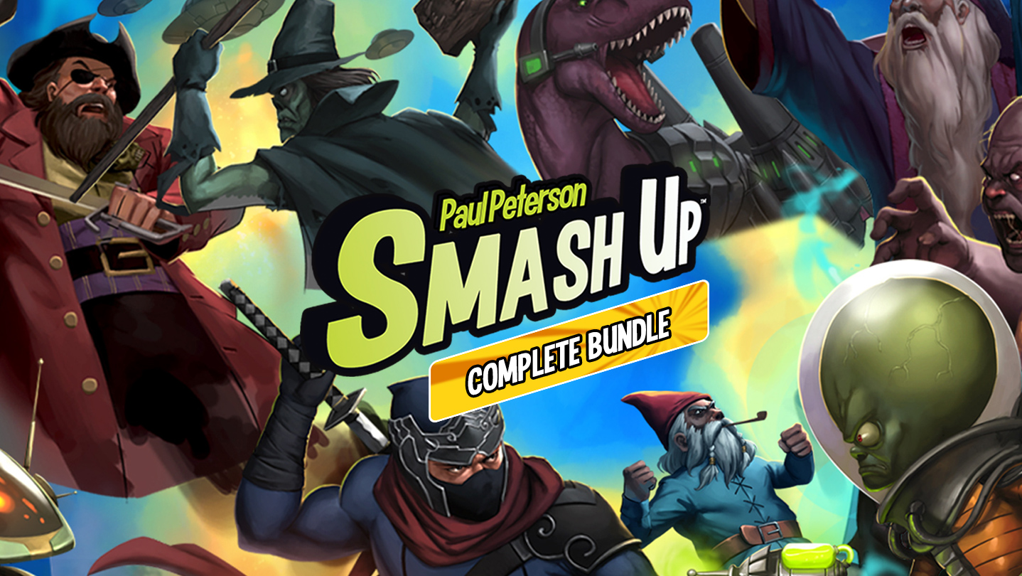 Zombies, pirates and more in Smash Up - Complete Bundle! Choose your factions and set off to conquer your bases in the award-winning Smash Up shufflebuilding game. The bundle also includes: new factions and mechanics for new ways of winning! All at reduced prices!