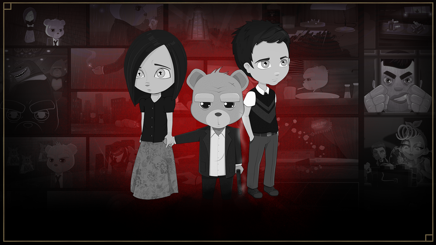 Dark interrogations, sarcastic banter, and challenging puzzles lie in store for our heroes as they collect clues to solve a bigger, more sinister mystery. Featuring an evocative soundtrack, expansive narrative and a uniquely drawn 2D animated art-style accented by an impressive film noir style, Bear With Me will take players through an emotional rollercoaster of a journey that will determine the fates of our protagonists.