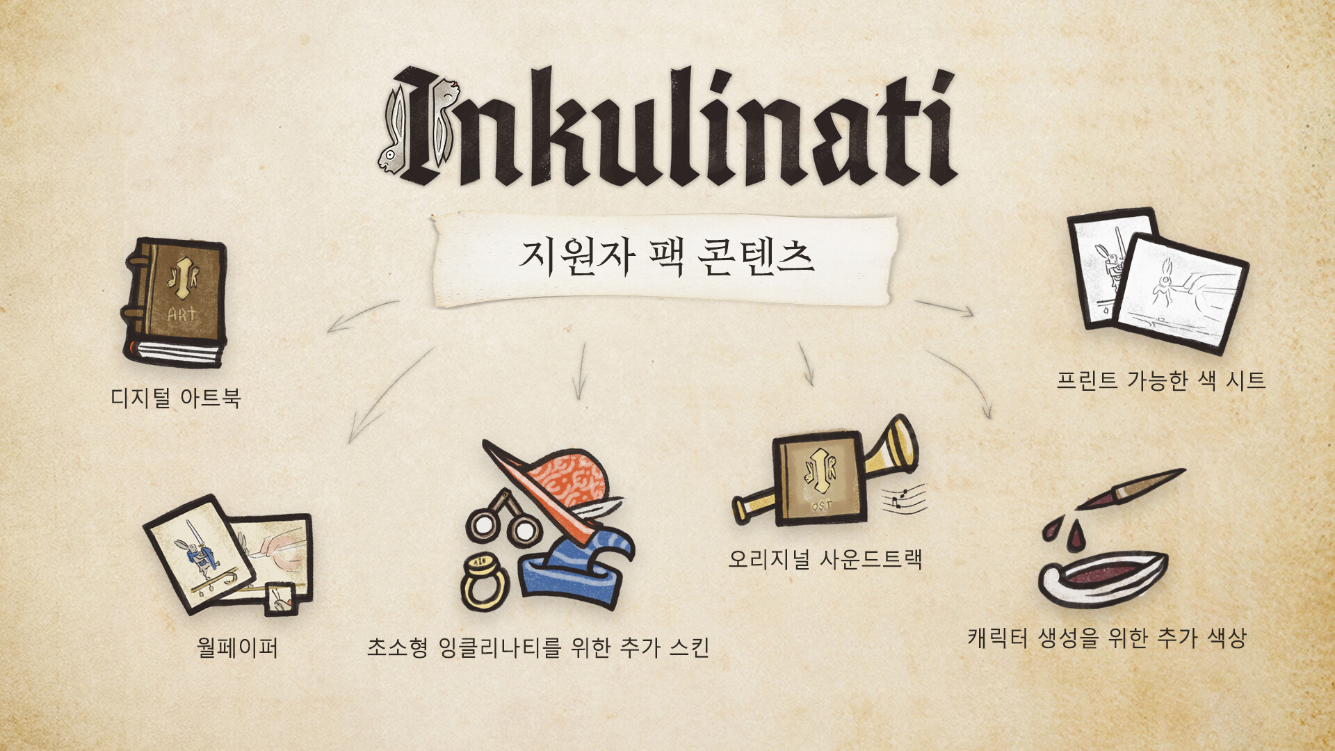 Inkulinati 게임 및 서포터 팩 모두 포함 - 게임의 선정된 보너스 콘텐츠가 제공됩니다.