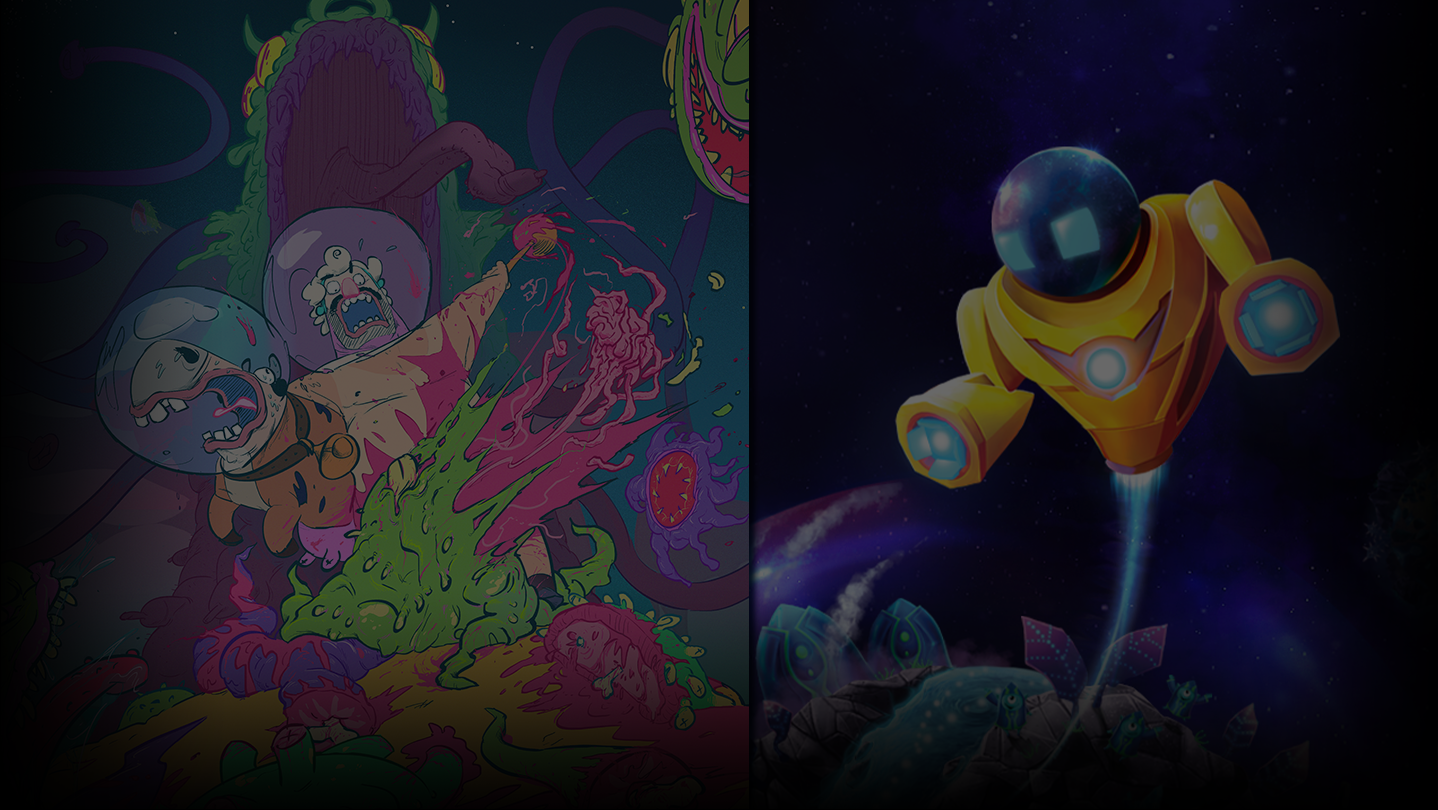 Robonauts -Shoot through storms of weird and funny creatures, jump between planets by switching gravity, and relive the childhood fun of your very first arcade shooters - alone or with a friend in co-op!