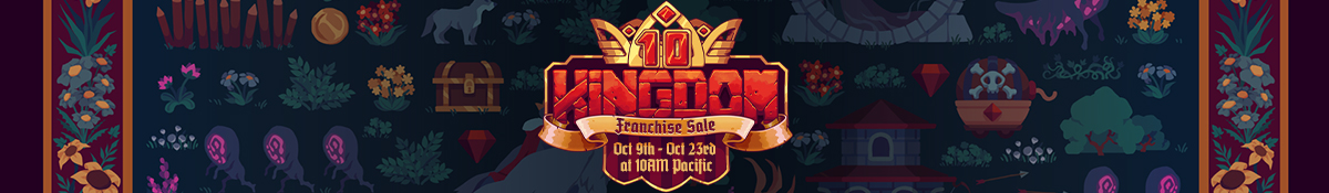 The Kingdom series is a 2D sidescrolling micro-strategy game with a minimalist feel wrapped in a beautiful, modern pixel-perfect aesthetic. Play the role of the Leader or the Monarch, enter a procedurally generated realm, and recruit loyal subjects to make your Kingdom flourish. Protect your domain from creatures looking to steal your coins and crown, explore islands, and discover curious and cryptic artifacts to aid your encounters with the monstrous Greed.