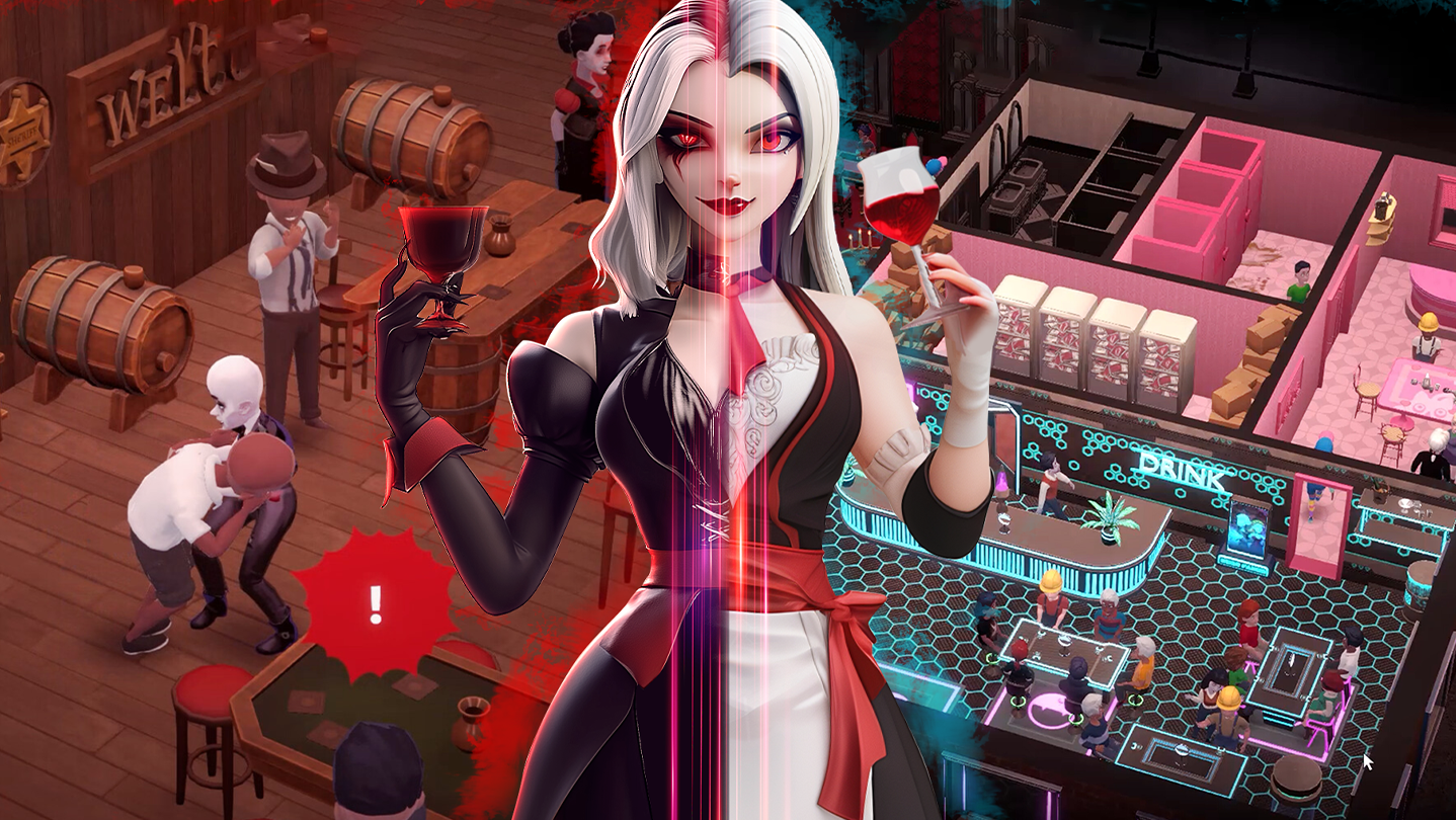 Blood Bar Tycoon is a vampire bar management game. Build bars and blood factories, lure humans to harvest their blood, process it, and serve your customers: other vampires. Research quirky machines and deal with hunters! Expand through Crimson City to become a mighty Elder!