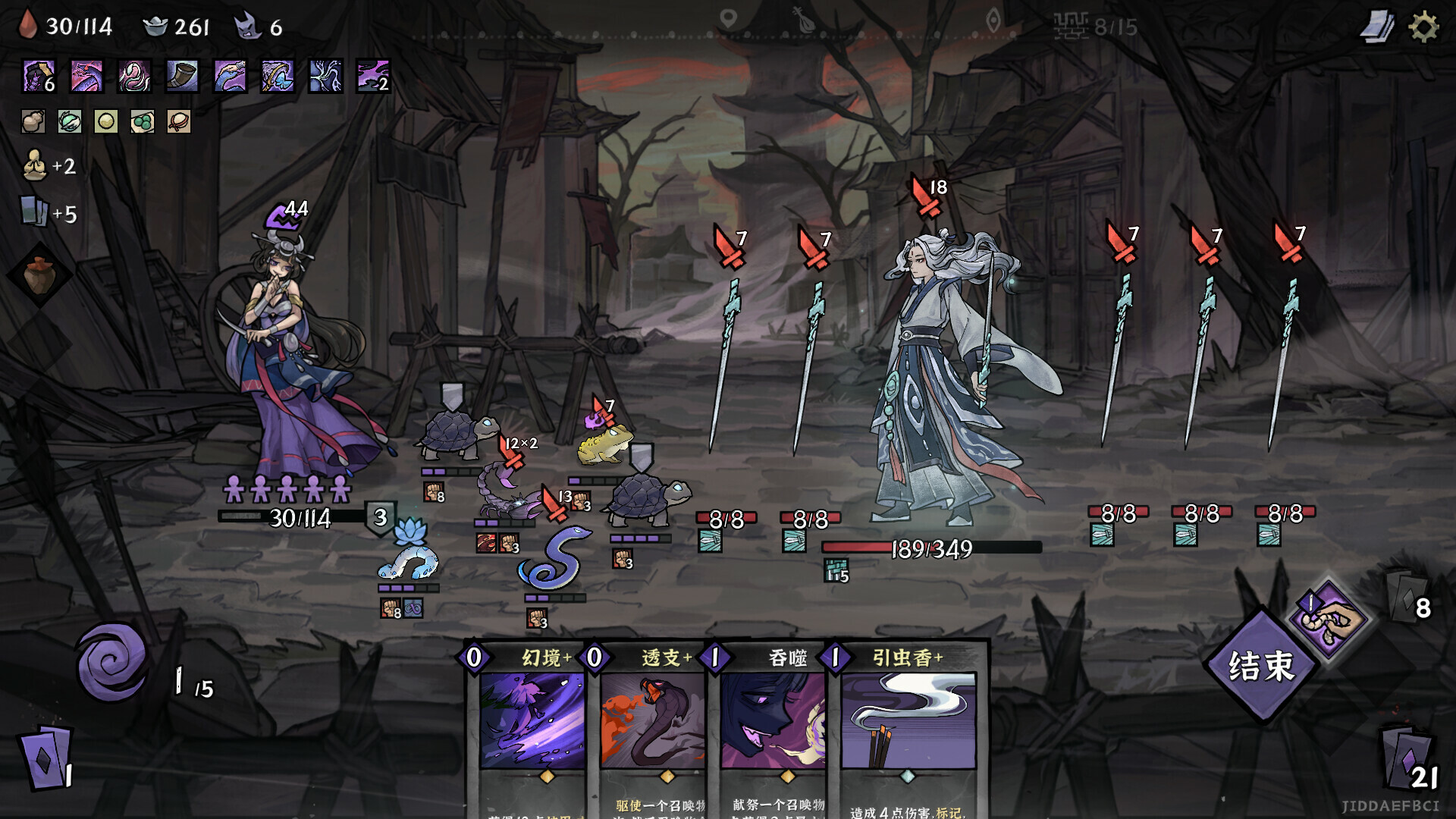 《降妖散记》是一款国风卡组构建roguelike游戏。上天无道,妖孽横行。在一次次与妖怪的对决中收集不同的招式卡牌,辅之以修炼合适的心法/丹术/蛊术,找到自己的道路,试着为被妖怪蹂躏的世人带来一丝希望。