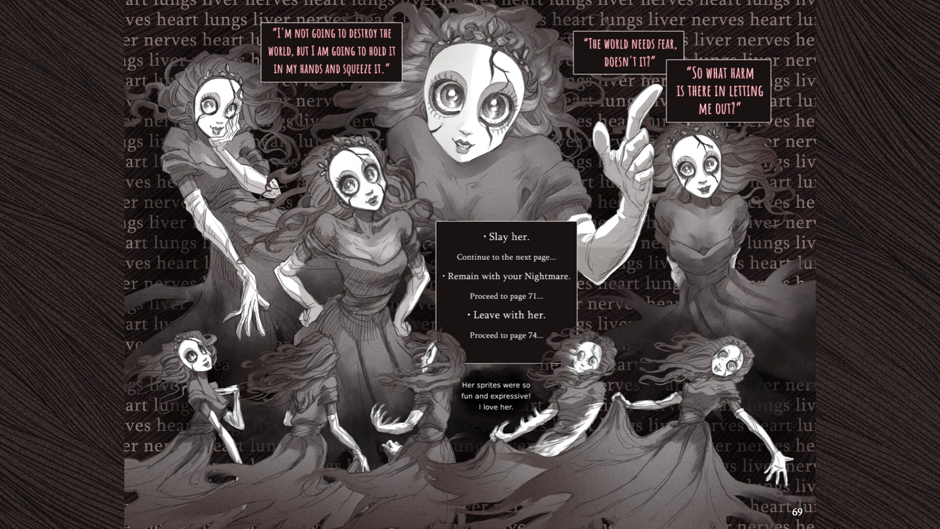 • A nearly 300 page PDF digital art book, inspired by the CYOA books of your childhood! It's like playing a (digital) analog version of the game, complete with artist commentary. And choices are hyperlinked to where you need to go, so no need to flip back and forth across pages.