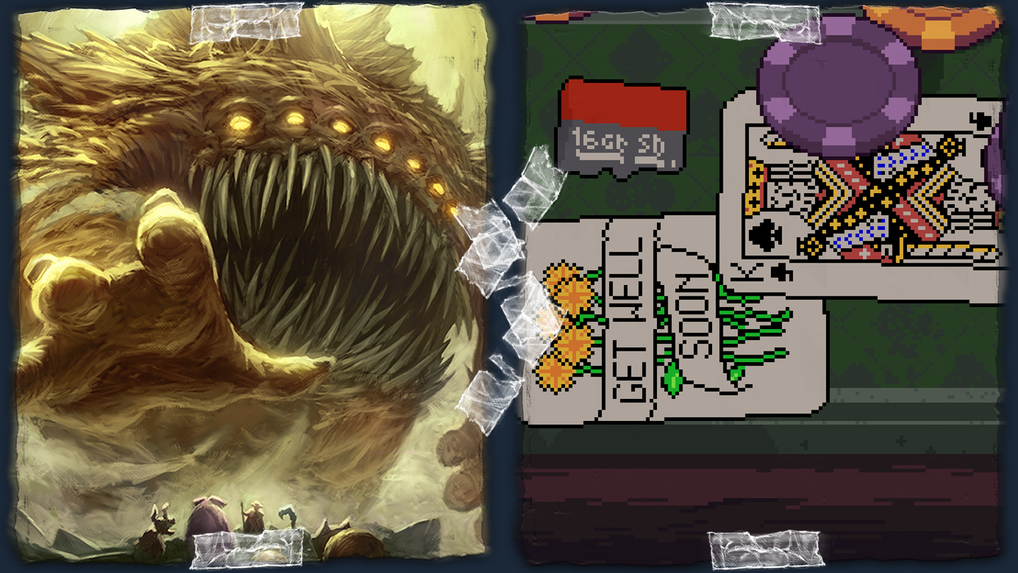 Battle your way through a seedy tavern filled with gambling addicted townspeople in this Blackjack Roguelike Adventure. From aces and face cards to tarot cards, business cards and more, create your unique deck to beat the house.