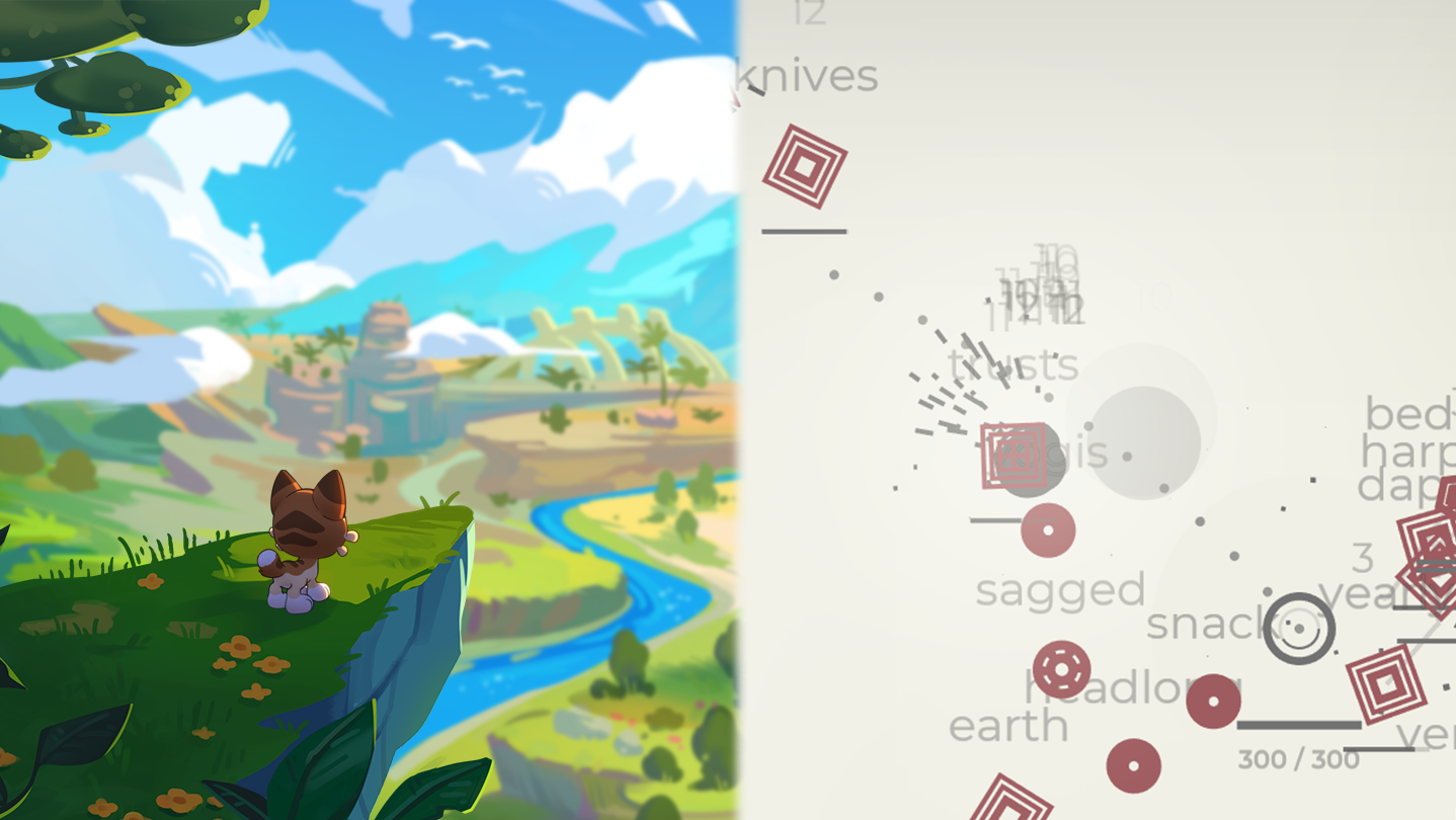 A typing game where you play as a cat, crushed by a computer and transported to a fantasy world of swords, magic, catgirls and furries! As the hero summoned from another world, venture forth with your trusty keyboard, defeat foes and save the cat kingdom!