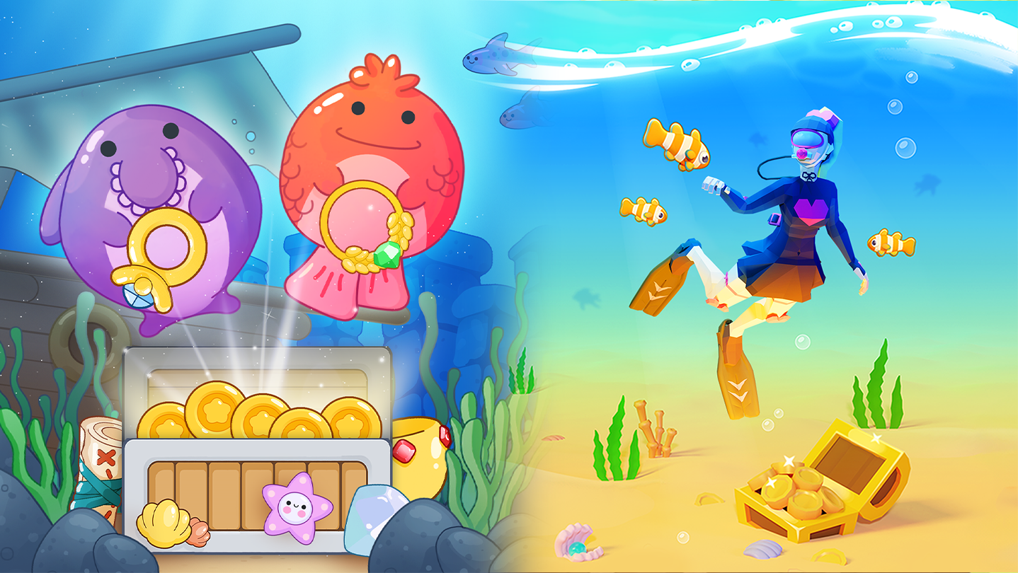 Dive into an underwater world of adventure and fortune with this exciting bundle featuring Treasure Drop and Aquarium Land!