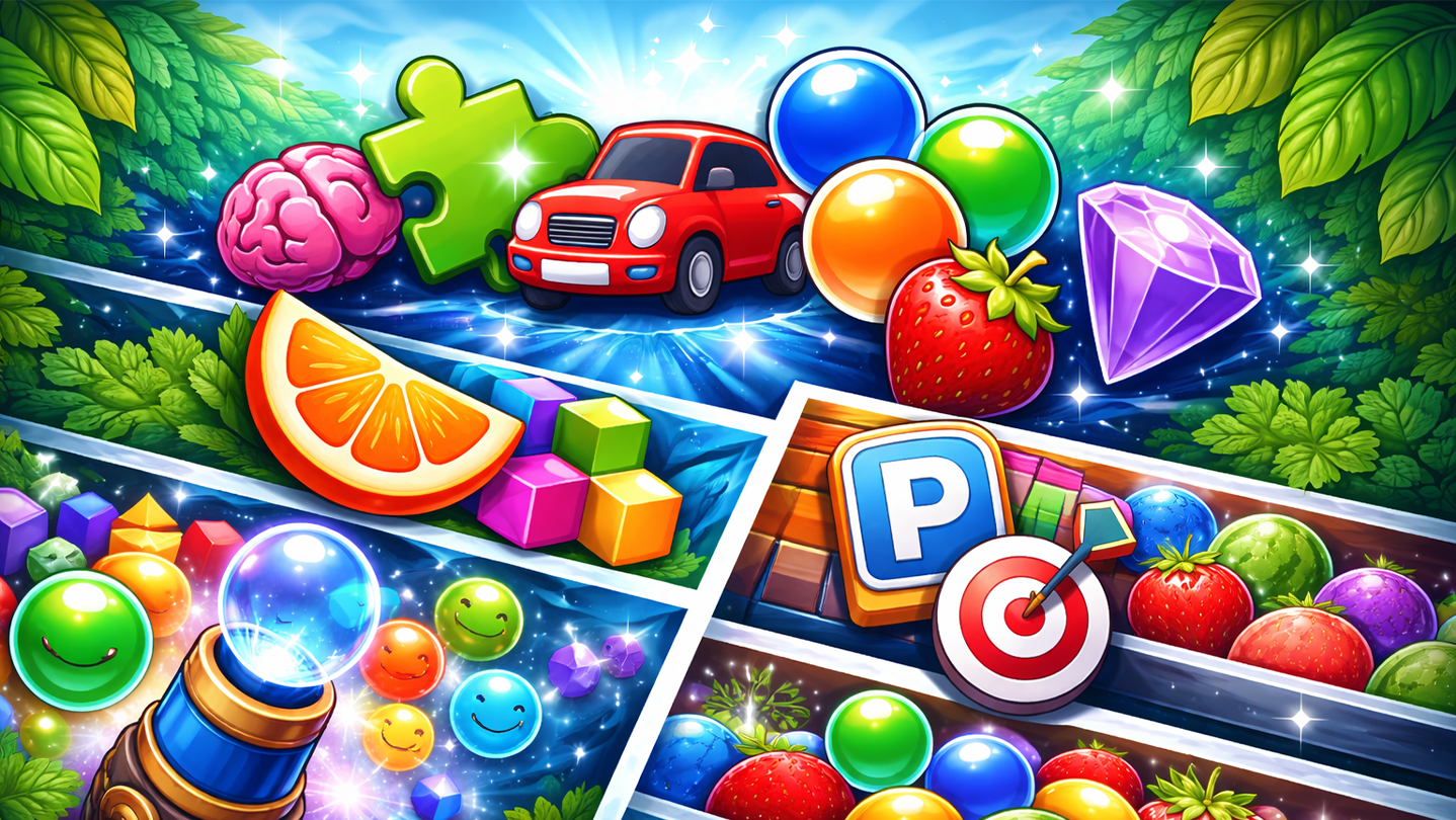 Challenge your brain, test your reflexes, and enjoy hours of casual fun with this curated collection of five unique games! From puzzles that sharpen your memory and logic to colorful match-3 and sliding games, plus relaxing yet engaging driving and bubble-shooting challenges, this bundle has something for every player.