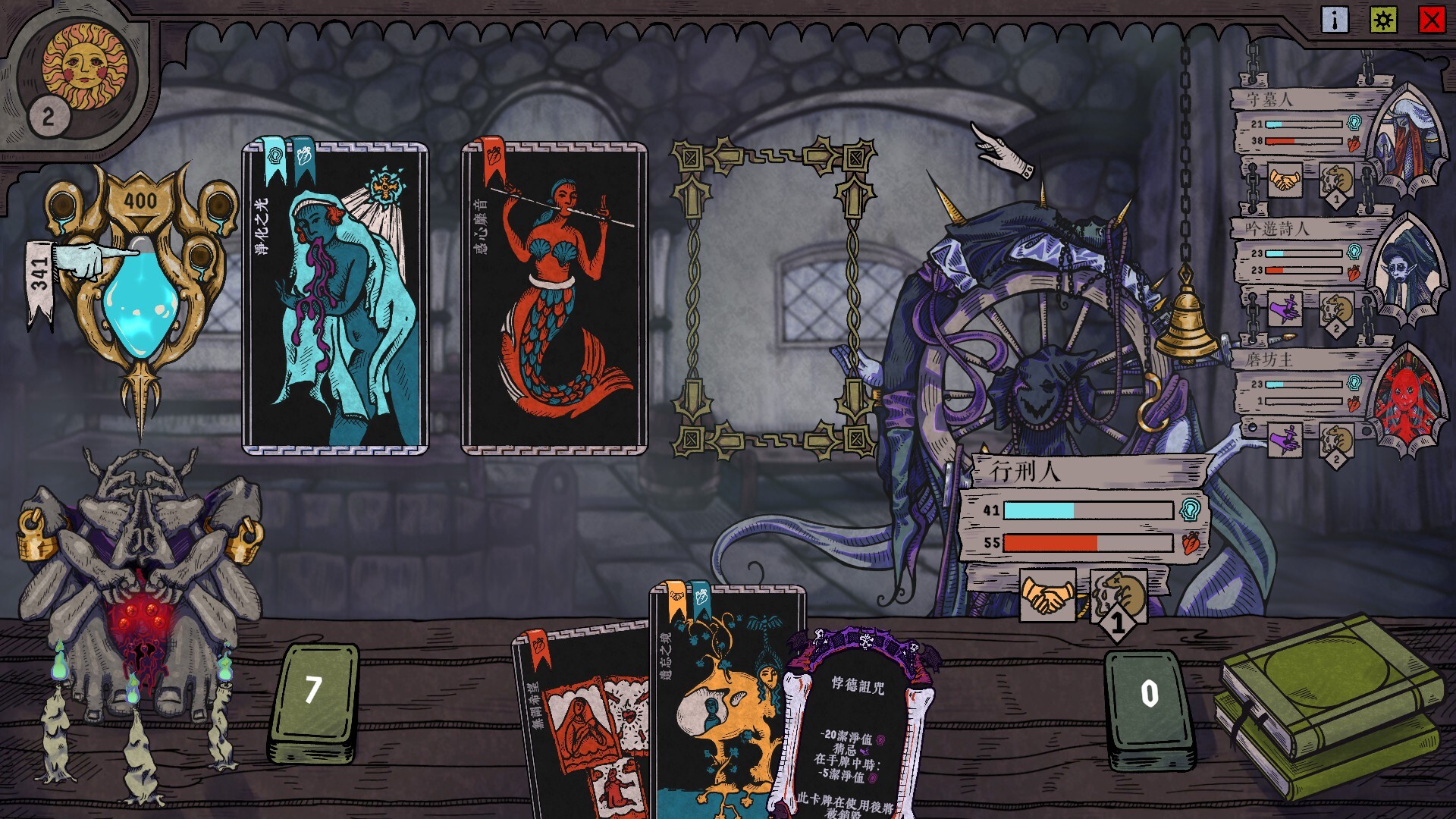 A grim medieval deckbuilder where you use your dubious healing methods to protect bizarre villagers from the corrupting influence of ancient evils.