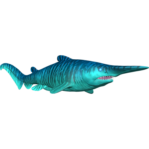 Often seen stalking reefs, this teal striped Goblin has been reported to disappear suddenly as if it were an illusion.