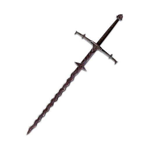 The dark cherry lacquer on the blade may be reminiscent of a flame, but rumor has given this sword a different name. The caustic nickname Ulcer, given by mercenaries, comes from its ability to leave gaping wounds that do not heal.