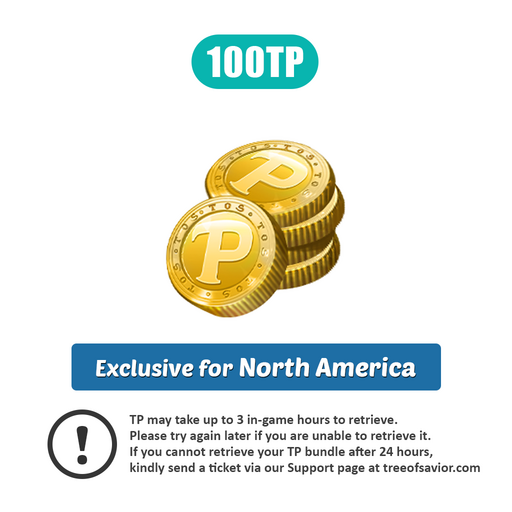 You will receive 100TP to use in-game. You may only use this item on [NA] Zachariel server. Please note that TP can be received via TP UI button on up right side of screen, next to Minimap. Against Chargeback Fraud, Users whom have new steam accounts, or accounts with short purchase history will be applied with Monthly in-Game TP Shop Usage Limit of 1000TP. In order to lift the monthly purchase limit, please contact our Ticket System.
