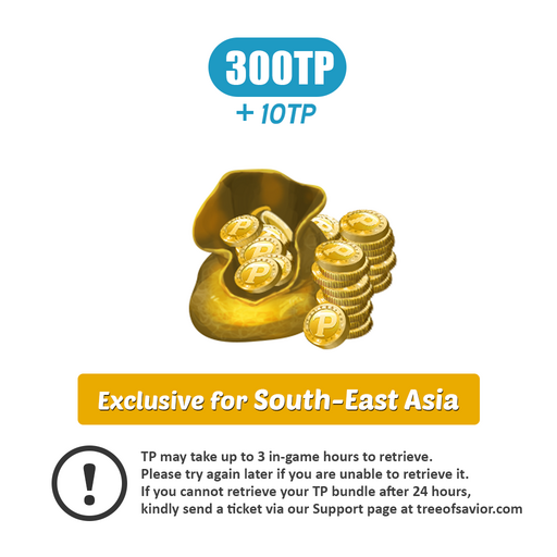 You will receive 300TP to use in-game. You may only use this item on SEA(South-East Asia) servers (Telsiai or Sigita). Please note that TP cound be received via TP UI button on up right side of screen, next to Minimap. Against Chargeback Fraud, Users whom have new steam accounts, or accounts with short purchase history will be applied with Monthly in-Game TP Shop Usage Limit of 1000TP. In order to lift the monthly purchase limit, please contact our Ticket System.