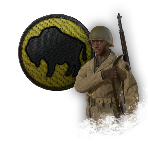 The 92nd 'Buffalo Soldiers' Infantry Division is a rare unit within the U.S. Army faction and unlockable at the upper third ranks. Items included with this unit are: arm patch and helmet stencil. Features the voice of James. Playable on the maps Crete, Sicily, Ortona, Comacchio, Salerno, Dog Red, Saint Lo, Bastogne, Foy, and Reichswald.