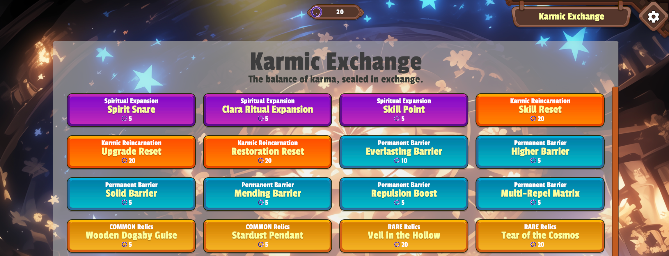 Developer’s Note: We understand that stepping back through Transcendence can feel like leaving precious progress behind. The Karmic Exchange is our way of honoring those efforts, turning what is lost into a gift that helps you grow even stronger.