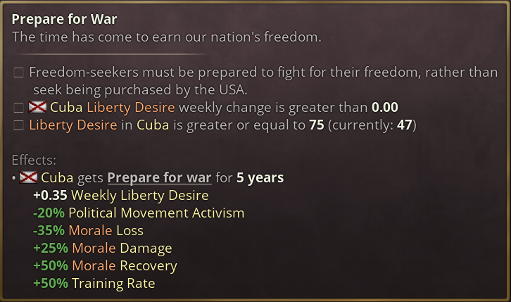 Otherwise, with enough liberty desire, it is time to prepare for war. Note these numbers are still being balanced and are subject to change.